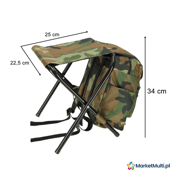 Krzesło wędkarskie turystyczne składane plecak moro 10l
